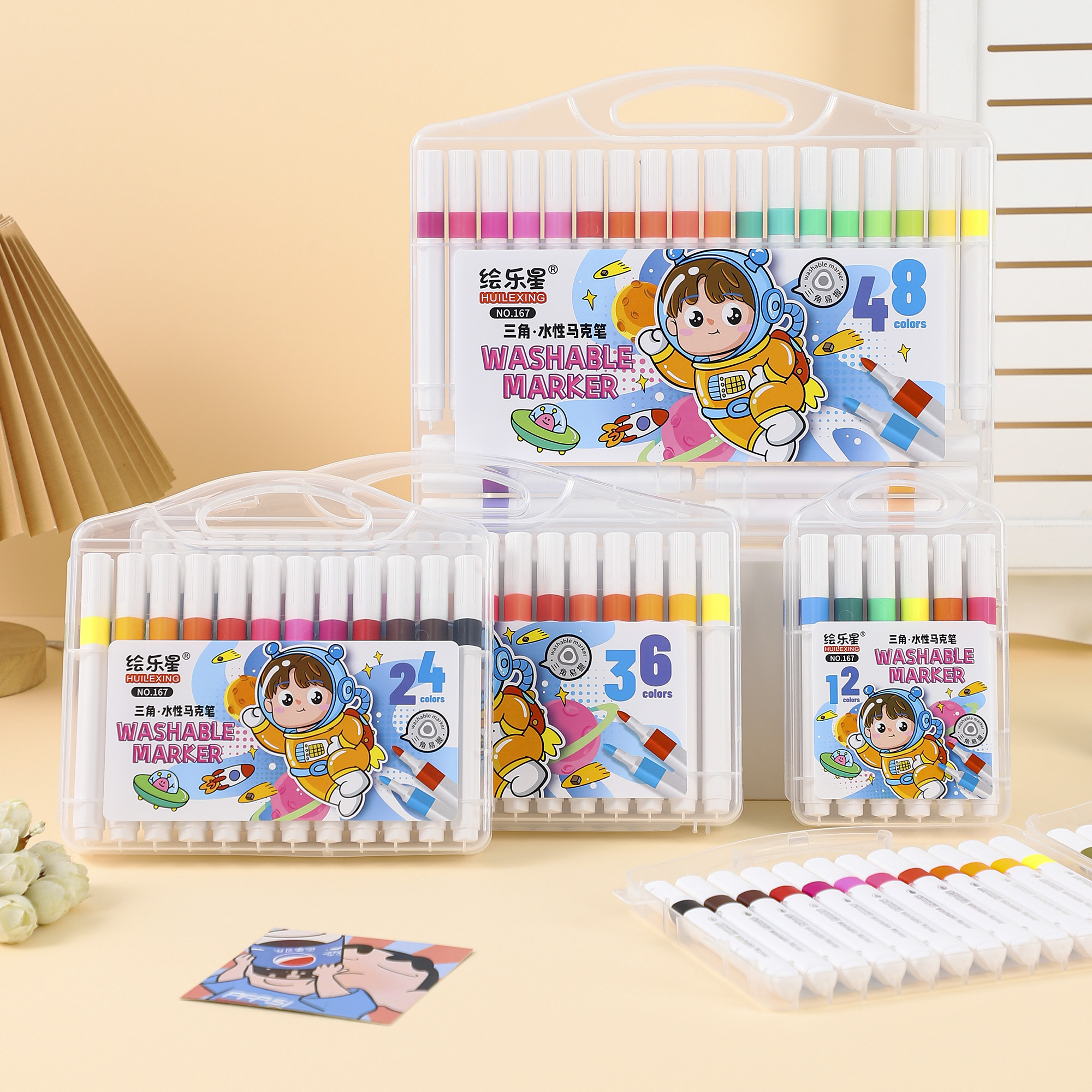 HUILEXING Color Pen, 12/24/36/48 Colors Washable Triangular Watercolor Felt Tip Pen, SF-167